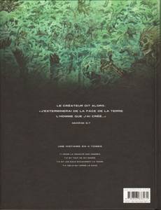 Noé face à la douleur de mettre un terme à l'humanité. Mais que se passerait-il si un passager clandestin, voire même 2 se trouvaient sur l'arche ? Dans la lignée des 2 premiers tomes avec quelques planches assez impressionnante sur la création de la Terre...