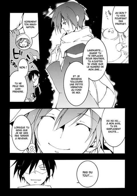 Alors qu'Eher a supprimé Kal et se rapproche de Teito, ce dernier retrouve enfin Frau. Landkart, quant à lui, se fait réduire en morceaux par la faux de Frau, si bien qu'il ne reste désormais de lui plus que son coeur. Teito dit alors vouloir le conduire auprès du roi des Cieux avant que celui-ci ne soit plus que cendre. Mais un Verloren sans visage va tout à coup apparaître !