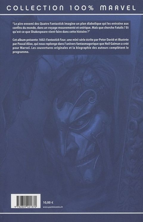 Nouvelle incursion dans l'univers imaginé par Neil Gaiman, recréant les super-héros Marvel... en l'an 1602 ! Après la réédition en format DELUXE de la saga originelle et la mini-série publiée l'an dernier, c'est au tour de Peter David et Pascal Alixe de s'intéresser à des héros qui n'ont été que survolés lors des précédentes sagas : les Fantastiques. Dans cette étonnante aventure, le Comte Otto Von Fatalis kidnappe... William Shakespeare (rien que ça !), et c'est un des membres de la troupe de théâtre du célèbre auteur, Ben Grimm, qui réunit les quatre valeureux héros. Il est donc clair que cette épopée sera atypique !