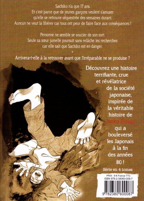 Sachiko, 17 ans, est séquestrée, agressée et torturée par un groupe de garçons dont le seul but est de s'amuser. Personne ne veut la libérer par peur de faire face aux conséquences. Devant l'inaction de la police et de ses parents, sa soeur jumelle poursuit sans relâche ses recherches.