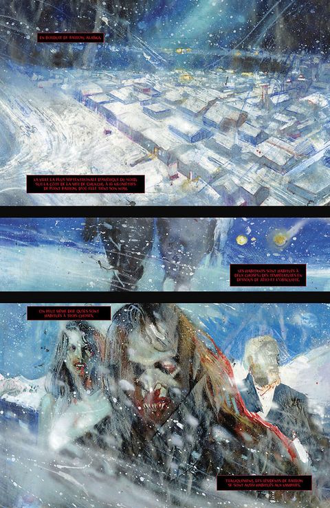 Barrow, Alaska, la ville la plus au nord d'Amérique sur les côtes de la mer chukchi, située à quelques kilomètres du point Barrow, d'où elle tire son nom. Les habitants de Barrow sont habitués à deux choses : le baromètre en dessous de zéro et vivre dans une obscurité totale un mois par an ce qui les a également habitué, et de manière assez tragique, aux attaques sauvages de vampires. Ils ont appris à vivre avec, ce n'est malheureusement pas le cas des nouveaux arrivants.