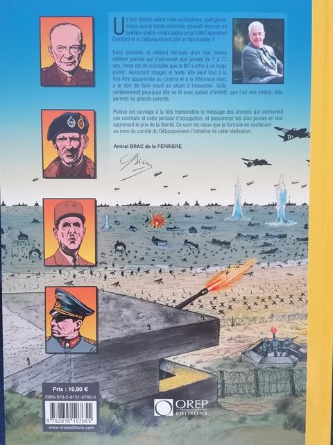 Un bon dessin valant mille explications, qui mieux que la Bande Dessinée pouvait résumer en quelques 80 pages ce qu'a été l'opération OVERLORD et le Débarquement allié en Normandie ? Sans parodier la célèbre formule d'un non moins célèbre journal qui s'adressait aux jeunes de 7 à 77 ans, force est de constater que la BD s'offre à un large public. Associant images et textes, elle peut tout à la fois être apparentée au cinéma et à la littérature mais a le don de faire court en allant à l'essentiel. Voilà certainement pourquoi elle se lit avec autant d'intérêt, que l'on soit enfant, ado, parent ou grand-parent. Puisse cet ouvrage à la fois transmettre le message des anciens qui connurent ces combats et cette période d'occupation, et passionner les plus jeunes en leur apprenant le prix de la liberté. Ce sont les voeux que je formule en soutenant au nom du Comité du Débarquement.