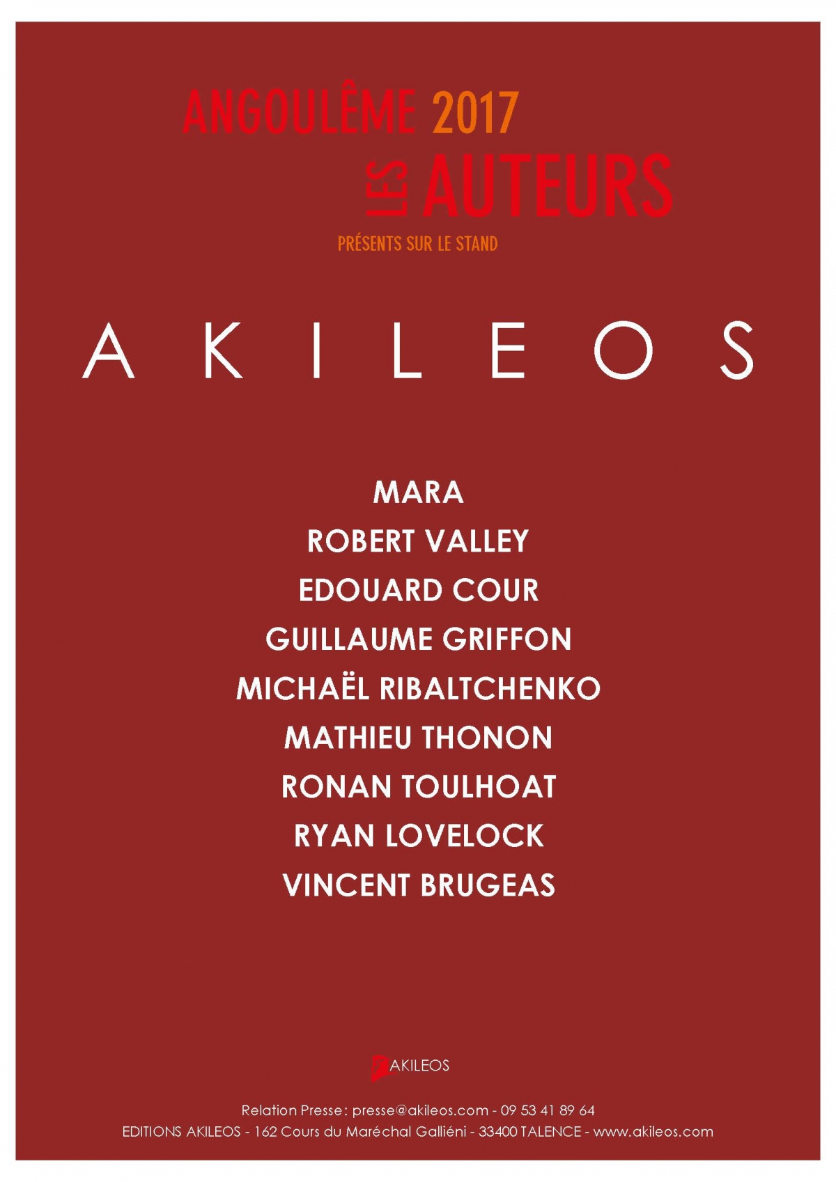 Comme chaque dernière semaine de chaque mois de janvier, le monde de la bande-dessinée sera bientôt réuni à Angoulême pour le FIBD. Et comme chaque année, on retrouvera Akileos sur place. L'éditeur sera d'ailleurs accompagné de plusieurs de ses auteurs phares !
