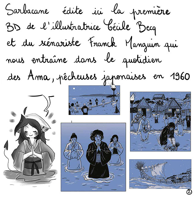 Au mois de mai dernier sortait Ama le souffle des femmes chez Sarbacane. Une belle bande dessinée se déroulant au Japon, qui avait tapé dans l'oeil d'Elsa. Hé bien notre dessinatrice Tsu Goupil a elle aussi eu le coup de coeur ! Elle vous en parle dans sa critique dessinée. Il s'agit de sa dernière critique publiée sur 9emeArt puisque je quitte le site et ne pourrai donc plus les publier. Elle continue néanmoins à publier ses travaux sur son compte instagram donc n'hésitez pas à la suivre !