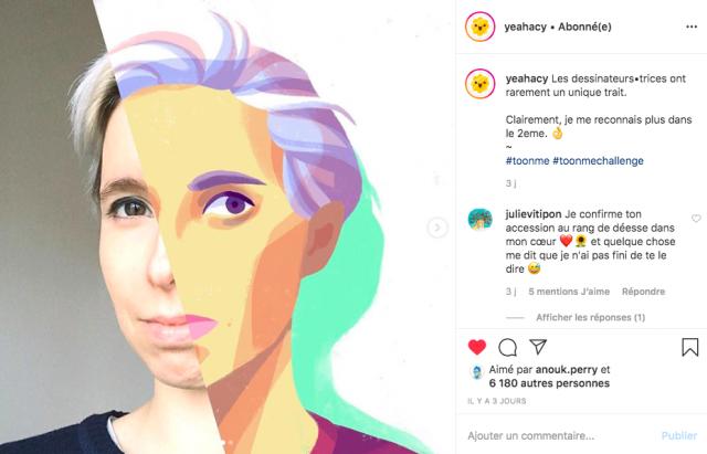 Pour plus plus de Toonme, rendez-vous sur le hashtag ! Les challenges de ce type permettent de créer du lien d'une façon originale au sein des communautés d'artistes. D'ailleurs, je vous conseille de suivre le hashtag Drawthisinyourstyle : si l'intiative avait été lancée ponctuellement, de nombreux artistes publient régulièrement des créations avec ce hashtag, invitant leurs pairs à proposer leur propre version de leur dessin.