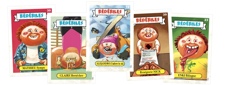 Une création dans l’esprit déjanté des cartes Crados (Garbage Pail Kids en V.O.) créées par Art Spiegelman et Mark Newgarden qui offraient des cartes à collectionner & stickers avec des jeux de mots douteux, sur des images dégoûtantes & amusantes (pour les nostalgiques ou les curieux, un site les compile ici).