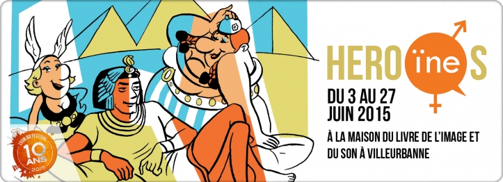 Depuis l'an dernier, l'exposition héroïnes est intégrée au Lyon BD festival. En 2014, elle était un peu décevante : le thème du genre dans la bande dessinée est un vaste sujet. Pourtant, seule une dizaine de planches était affichée, et aucun originaux. De plus, certaines planches étaient plus parodiques que visionnaires. L'affiche, la même depuis l'an dernier, représente Astérix et Obélix, décolleté plongeant et pause lascive, se pâmer au côté d'un Cléopâtre version garçon. Une bien drôle de façon de déconstruire le stéréotypes de genre...
