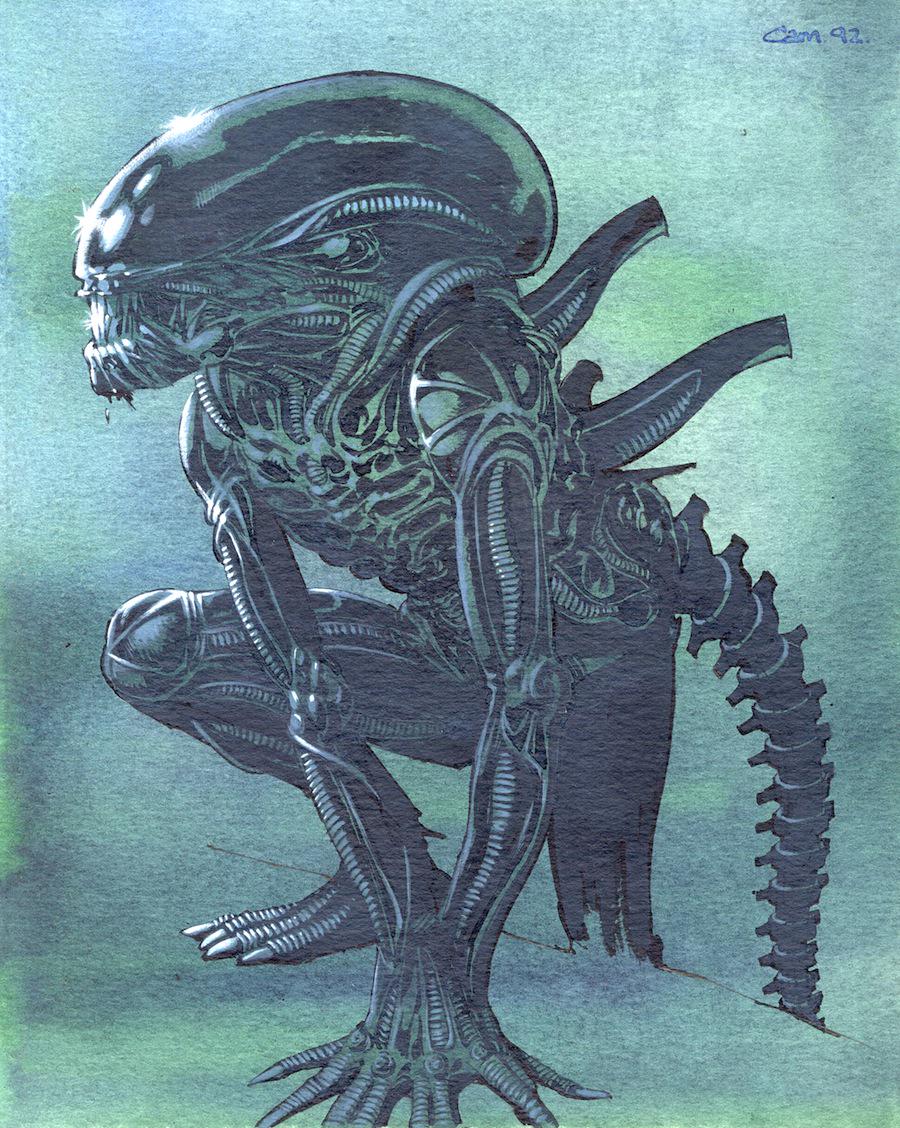 L'officialisation d'un cinquième film Alien a donné l'idée à Cam Kennedy, dessinateur écossais bien connu des lecteurs de Judge Dredd et des comics Star Wars de Dark Horse, de ressortir cette illustration de ses archives. Toujours aussi effrayante la bestiole !