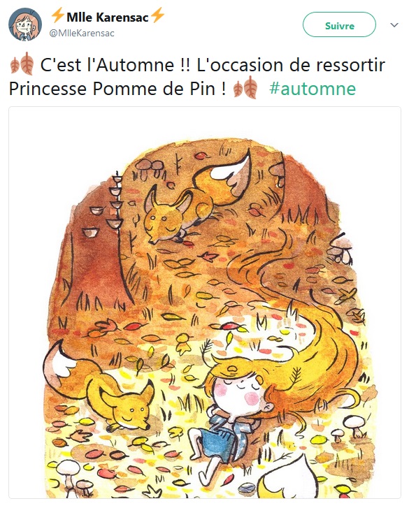 Au fait, vous connaissez Mlle Karensac ? Retenez bien ce pseudonyme : cette auteure de talent va bientôt voir son premier album édité. En attendant, vous pouvez retrouver ses oeuvres sur son blog et sur son compte twitter.
