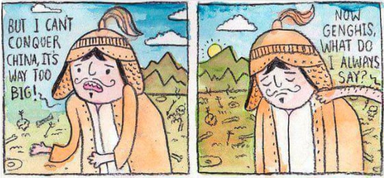 On termine sur un jeu de mots mignon tout plein, parce que même les empereurs sanguinaires ont besoin, parfois, de développement personnel. En ce moment, c'est le NaNoWriMo : des tas de gens dans le monde entier se sont donnés pour but d'écrire en un mois une nouvelle complète. Un défi conséquent, qui nécessite beaucoup de détermination. À cette occasion, j'ai pas mal vu tourner cette illustration de Luke Toth et je la trouve très adaptée. Pour lire la chute, cliquez sur l'image :