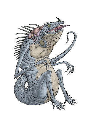 Peut-être parce qu'il fut trop seul, peut-être parce qu'il était malade et un peu aigri, alors, Lovecraft a peuplé nos nuits de créatures atroces et répugnantes, il nous a hanté et il continue à le faire avec ses mythologies venues d'autres planètes et auxquels certains humains vouent un culte sanglant et barbare, les plongeant dans la folie et les ténèbres. Définitivement, ce film propose une belle esquisse de ce que sont les créatures du mythe lovecraftien, des créatures visqueuses, horribles qui attendent leur heure, rampant dans le silence des forêts et dans les profondeurs abyssales de nos océans, prêtes à reprendre le contrôle de la terre, là où elles sont nées et où elles reviendront pour un règne de chaos et de douleurs. (Source) On peut d'ailleurs voir le monstre du film comme étant Bokrug, le Grand Lézard d'eau, la malédiction de Sarnath. Bokrug est apparenté à un lézard ou à un iguane. Il est de couleur bleue-verte et de très grande taille. Il est d’une très grande patience. Il est l’un des rares Grands Anciens venant des Contrées du Rêve, pourtant il est possible que ce ne soit pas un Dieu, qu’il ne se soit que promu à ce « grade ». Il est en tout cas cité comme étant un Dieu des Thuum’ha. Ce serait le peuple vivant dans la cité aquatique d’Ib qui l’auraient vénéré. On trouve des traces d’un petit Culte en son honneur de nos jours. (Source)