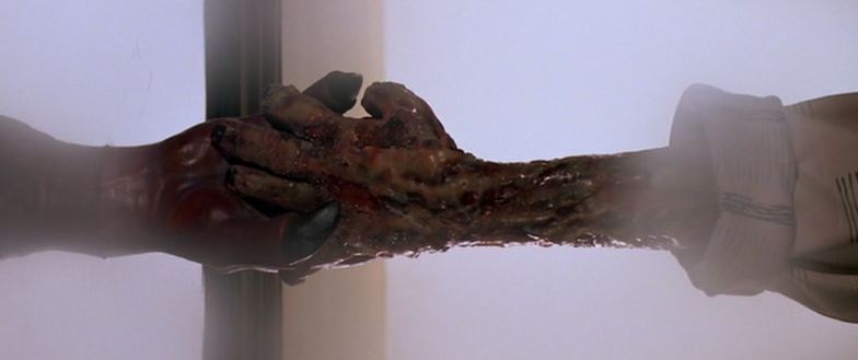 Qui n'a jamais eu peur du brouillard dans sa jeunesse ? Qui d'entre nous ne s'est pas penché un jour au-dessus d'une étendue d'eau en se demandant ce qu'elle pouvait bien abriter ? L'eau abrite donc des monstres qui ne semblent pas porter les humains dans leur coeur mais plutôt dans leur estomac. L'eau est leur abri, mais aussi et surtout leur territoire de chasse, car si l'homme a su coloniser la terre, il n'a pas encore réussi à faire de même avec les eaux. C'est donc en elles que les horreurs les plus grandes peuvent prendre place et nous épier C'est dans ces lieux inexplorés que Stephen King abrite donc de manière très classique certains de ses monstres les plus inquiétants. (Source) Tout est donc fait dans le film pour retranscrire l'œuvre originale. Trop, diront  peut être même certains. Darabont dévoile quand même un peu plus d'éléments que le récit originel. L'extérieur par exemple, est totalement extrapolé, car tout juste suggéré dans le trop court texte dont ce film s'inspire. Il en est de même pour les monstres. Ces derniers étant nécessaires à cette adaptation, Darabont nous fait découvrir un design particulier, qui fonctionne parfaitement. (Source)