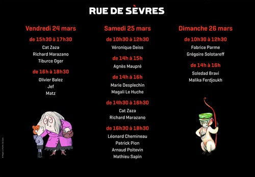 Vous retrouverez en galerie les horaires de dédicaces sur l'ensemble du salon qui se tiendra du 24 au 27 mars à Paris.