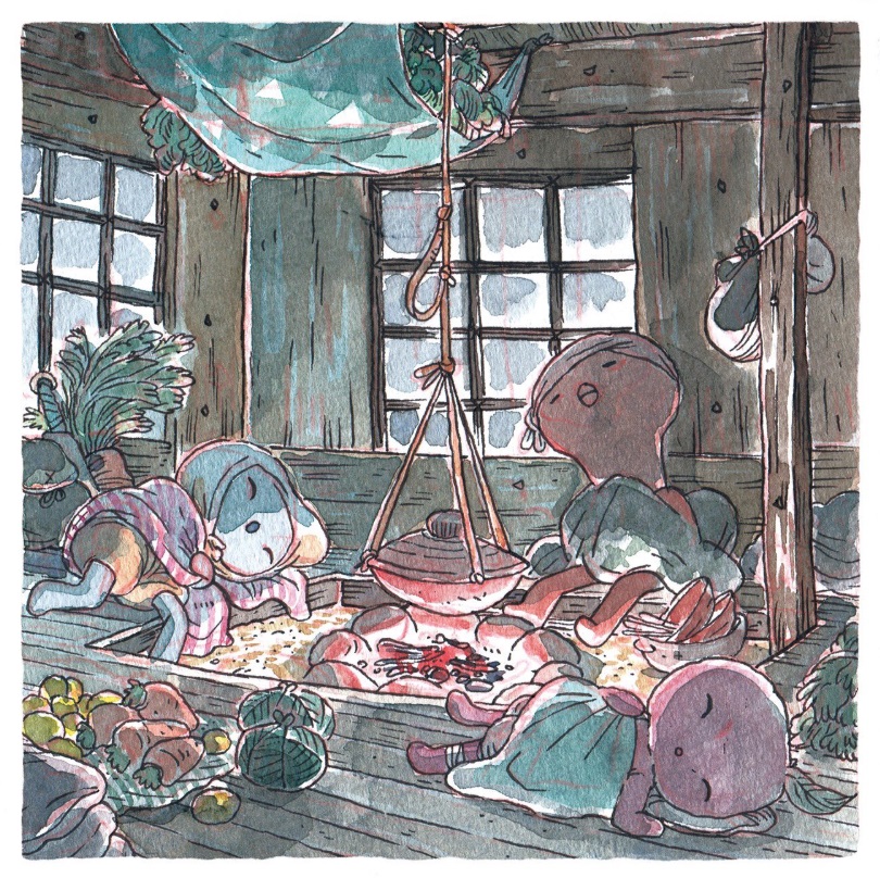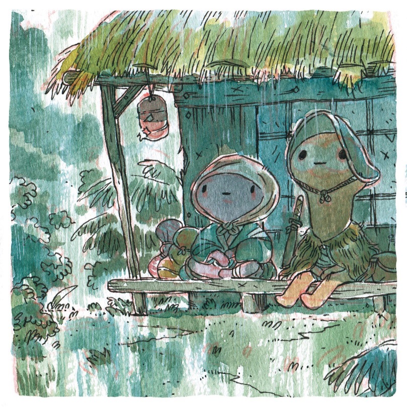 Et aujourd'hui Geek Art a dévoilé de nouveaux prints de l'auteur. Il s'agit cette fois de quatre illustrations plus petites, sur le thème du Japon médiéval. Vous pouvez retrouver ces oeuvres au bas de l'article : il s'agit de la seconde série d'illustrations sur ce thème que propose Guillaume Singelin. La première représentait des scènes de voyage, celle-ci s'intéresse plus à la vie quotidienne. On découvre des personnages en train de manger, de se laver, ou simplement de contempler la pluie... Leurs designs font un peu penser aux protagonistes de The Grocery.