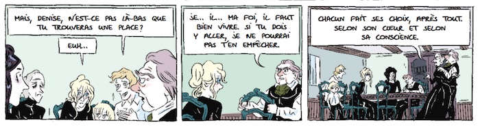 Agnès Maupré adapte avec brio ce classique de la littérature française. Zola est de ces auteurs tant étudiés au collège et au lycée qu'il pourrait finir par avoir l'air austère, mais l'autrice nous montre à quel point la société du Bonheur des Dames n'a pas pris une ride. C'est tragique et drôle, sensible et cruel. Loin d'autres adaptations de classiques en bandes dessinées, souvent trop littéraires, un peu figées, Agnès Maupré réussit le passage d'un médium à un autre sans qu'on y perde en saveur. Les longues descriptions du magasin sont remplacées avec panache par son dessin foisonnant et ses couleurs pétillantes pour ne garder que l'essentiel du récit : les personnages et les liens qui unissent les uns aux autres.