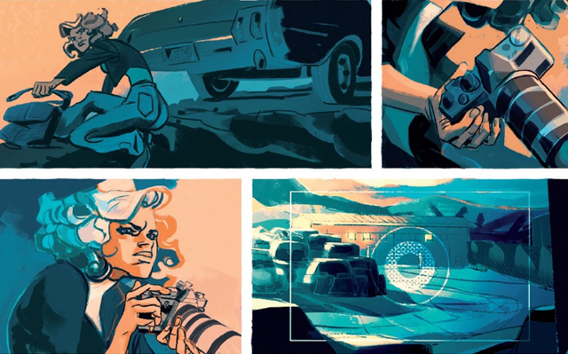 Ava Granger - Détective Privée est une BD moitié italienne moitié française, qui plante son décor dans un Chicago des années 70. Si la française avait disparu de nos radars pour revenir dix ans plus tard sur le devant de la scène, l'italien lui est inconnu au bataillon. Riccardo Colosimo est professeur de dessin et de bande dessinée depuis plus de quatre ans à Rome. Cette première BD fait l'étalage de son talent d'illustrateur et de son originalité. Loin des sentiers battus, des remplissages qui ne dépassent pas du trait, des aplats propres et des pastels délicats, ici le dessin ne respecte plus aucune des règles anciennement établies. La ligne se veut courbe sur l'épaule et anguleuse sur la mâchoire, s'épaissit sur l'ombre d'un mur et s'affine sur les contours d'un pistolet. Le manque de détails me chiffonne parfois. Certains visages sont à peine déchiffrables. Les silhouettes sont jetées, les poses dynamiques... Les paysages se résument à des masses étalées en arrière-plan, découpées par la lumière et la profondeur de champ. Et Mama Mia les couleurs...