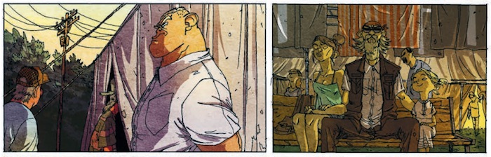 Armand Brard a imaginé un puzzle composé de petites histoires qui prennent leur sens au fur et à mesure du récit. Il vaut mieux vous prévenir, Bayou Bastardise est assez exigeant, et demande une certaine dose de concentration pour être compris. On se retrouve dans des petites scènes très réalistes, qui ne nous font pas le cadeau habituel de la bande-dessinée : une introduction, une présentation des personnages, des enjeux... Ici il faudra comprendre seul qui sont vraiment les personnages en face de nous, leurs motivations, et peu à peu les rapports qui les lient les uns aux autres. C'est rarement, ou peu, expliqué, mais en ne perdant pas le fil, les noeuds se dénouent et livrent une histoire faite de petits drames, de magouilles en tous genre, et puis de projets d'avenir, aussi.