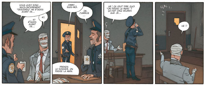 La bande dessinée joue sur un habile jeu de flashbacks, pendant que Richard Monroe raconte le déroulement de la soirée aux enquêteurs qui l'interrogent, distillant ça et là des indices jusqu'à la révélation finale. Les personnages sont plus charimastiques les uns que les autres, et les dialogues très réussis.