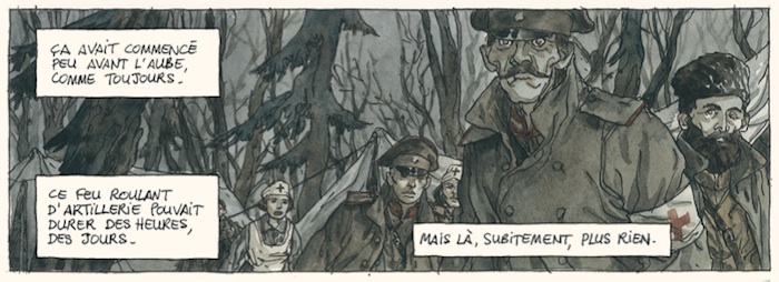 Entre les lignes mélange le récit de guerre vécu, et le récit de guerre imaginé mais richement documenté. Un siècle les sépare, mais les deux auteurs semblent travailler en duo sur ce livre surprenant, témoignage à la fois technique et humain d'une période où la mort faisait plus que jamais partie du quotidien.