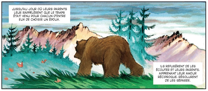 Publié chez Delcourt Jeunesse, le texte est adapté à un jeune lectorat, mais la langue et belle et plaira aussi aux plus grands. L'histoire est joliment simple, assez courte, mais les auteurs apportent une belle énergie à l'univers des contes, en y faisant souffler un vent d'aventure. Les légendes, dans la manière dont elles sont narrées, ont souvent cette patine qui les fait appartenir à un passé lointain et flou. Ici il n'en est rien, passé et présent sont profondément liés.