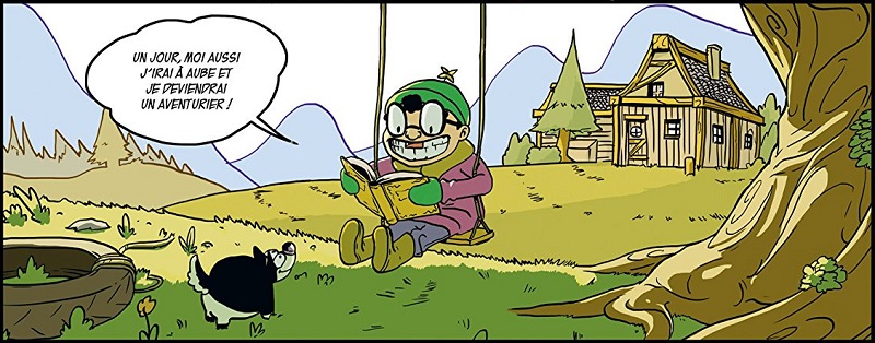 Finalement, la BD a un peu la trame narrative d'un jeu vidéo : on découvre le personnage, puis on part en quête d'Aube, la ville de tous les dangers et de toutes les découvertes. En chemin le personnage récupèrera des objets pour l'aider dans sa mission, fera face à de vils ennemis et même un boss final.