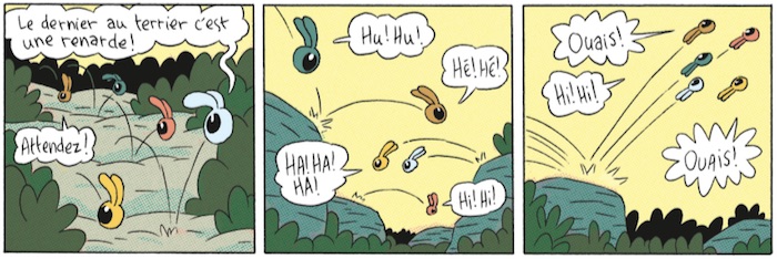 Forcément, le parallèle avec Le grand méchant renard, bande dessinée elle-aussi en strip mettant en scène tout un petit monde assez semblable à celui de La Renarde, se fait rapidement. Mais le héros de Benjamin Renner est aussi naïf que cette renarde est vile. On ne joue pas ici dans un registre touchant à l'humour fin, plutôt dans le bête et méchant. Et La Renarde fait fort dans son genre. Si tant ait qu'on n'ait rien contre des massacres de petits lapereaux mignons, le résultat est jubilatoire.