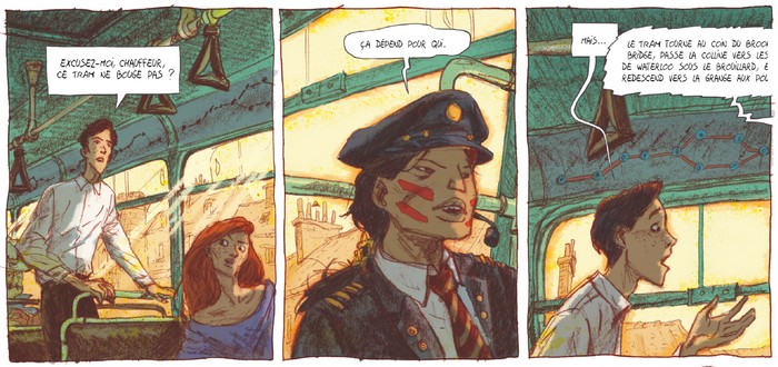 Le dessin de Martin Trystram est beau, vivant. Ses personnages sont vraiment charismatiques, et Valéria est particulièrement envoûtante, entre cascade de cheveux roux et sourire enjôleur. Le choix du trait marron plutôt que noir apporte une certaine douceur à l'ensemble, et les couleurs douces de Ruby achèvent de donner à la bd un petit côté rétro très agréable. Certains des cadrages cassent un peu la fluidité de lecture, mais dans l'ensemble la mise en scène a un petit côté pétillant qui colle bien à l'esprit générale de La Vallée.