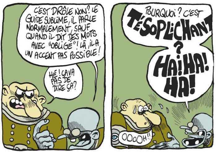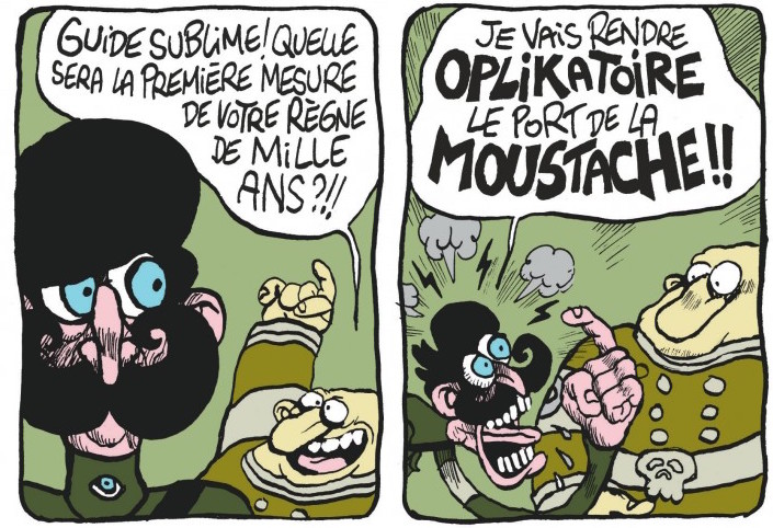 Fabrice Erre s'y connait bien en satire. Il s'est même spécialisé là-dedans dans sa carrière parallèle d'universitaire. Ce professeur d'histoire a même fait une thèse sur la presse satirique lors des révolutions françaises. Autant dire que faire grincer des dents sur les errements des puissants, c'est un peu son truc. Alors quand il invente un tyran, il ne peut s'empêcher d'y mettre beaucoup d'aspects qui nous rappellent d'autres détraqués politiques qui se sont mis en tête qu'ils pouvaient être les guides suprêmes de tout un peuple. C'est marrant, d'ailleurs, ces dictateurs qui sont souvent des petits mecs bien nerveux.