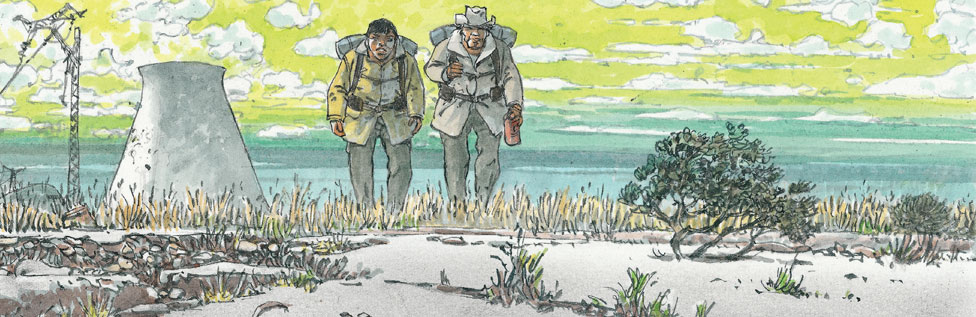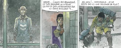 Et comme souvent, l'adjectif est autant une qualité qu'un défaut. Mais commençons par le positif avec une note sur le scénario d'Yves Huppen, qui justement, installe assez bien la tension dans le (faible) nombre de pages qui lui sont données. Le parfum de mystère qui se dégage des planches est plutôt savamment construit et nous invite à guetter tous les détails laissés dans les cases pour trouver des repères. A ce titre, les fans de Jeremiah, autre bande-dessinée signée Hermann, pourraient bien se retrouver en terrain connu.