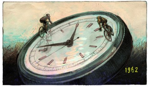 Aussi intelligent que fin dessinateur (les visages des coureurs sont reconnaissables au premier coup d'oeil, Bernard Hinault et Laurent Fignon en tête), Jan Cleijne va découper son récit en 10 époques bien distinctes, afin de raconter chronologiquement la progression et les changements du Tour. La première, celle de la fondation, nous est contée comme un film muet, le Paris des cartes postales et les couleurs des frères lumières en renfort.