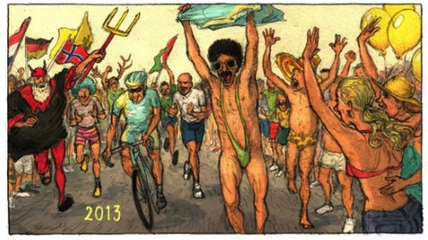 Un peu eclipsé cette année par un autre évènement sportif dont vous êtes enfin débarassés (et encore Bravo à nos voisins Allemands qui l'attendaient depuis 24 ans), Le Tour de France n'en reste pas moins l'un des sommets annuels de l'effort. À l'occasion de ses 100 ans en 2013 - ses 110 ans en vérité, mais c'était sa 100ème édition que l'on célébrait alors -, un artiste Hollandais du nom de Jan Cleijne choisissait de rendre hommage à la Grande Boucle pour son premier album de BD.
