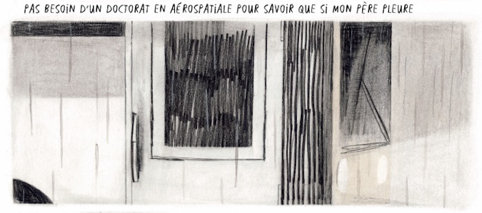 Le dessin d'Isabelle Arsenault s'allie à merveille aux mots de la scénariste. Son trait est tout en délicatesse, léger, presque aérien, plein d'émotion. La fragilité de Louis, l'innocence de Truffe, la force de leur mère, les tourments de leur père. Dans les planches dont même la composition a des airs de poèmes, les émotions sont à fleur de page et nous entrainent entre pénombre et lumière. La bd est en noir et blanc, réhaussé de halos colorés très doux dans les teintes que l'on rencontre dès la couverture. Du bleu turquoise un peu passé, du jaune vitaminé. Ces touches de couleur ressuscitent les sourires quand on les croit définitivement éteints.