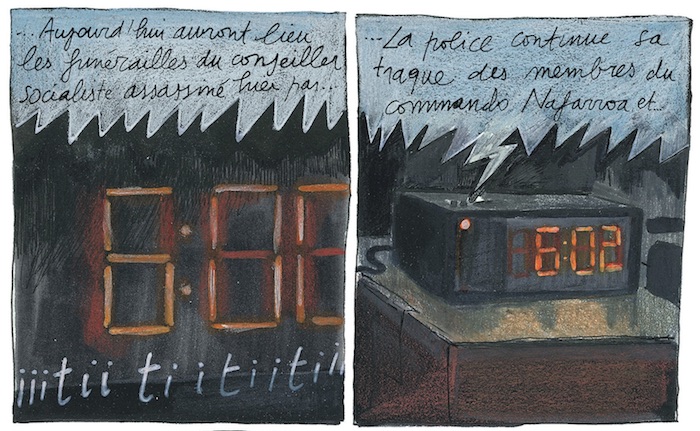 De l'ETA et de la situation au Pays Basque, on ne connait souvent que quelques images tirées des journaux télévisés. Le cinéma nous fait fantasmer le travail de garde du corps, mais cette bande dessinée nous en montre une version bien moins reluisante mais qui sonne plus juste. Un homme comme les autres, un père de famille joyeux, se retrouve à dormir avec une arme sur sa table de nuit et à vérifier que sa voiture n'est pas piégée à chaque fois qu'il y monte. Un quotidien morne où la mort ne plâne jamais loin et où la vie n'a plus vraiment de sens. Salto est un récit fleuve où il ne se passe pas grand chose et on peut parfois trouver le temps un peu long. Toutes les journées se ressemblent et Miguel s'éloigne sans le vouloir des siens. Mais c'est aussi entre les lignes un témoignage à part. Mark Bellido nous confronte à la vérité. Celles de ces hommes en noir à l'arrière plan, dont le rôle est de risquer leur vie pour protéger celle de quelqu'un d'autIls semblent faire partie du décor et sont pourtant eux aussi humains, avec une famille, des problèmes et des sentiments. Si le sujet est assez déprimant, l'auteur distille aussi dans son récit humour et auto-dérision qui rendent l'ensemble plus léger.