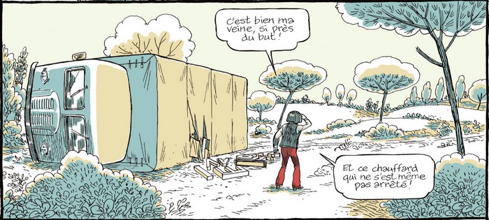 Graphiquement, le trait est assez épuré, rétro, et plaisant. La colorisation est en même temps très simple et juste ce qu'il faut de pétillante, mêlant habilement des couleurs passées à quelques touches très vives.