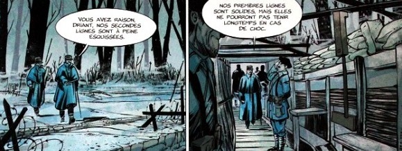 De son côté, le Verdun de Grand Angle est à l'image du nom de sa maison d'édition : puisque la série devrait aborder toutes les facettes de cette tristement célèbre bataille. Ce premier tome se tourne ainsi vers l'organisation de l'affrontement, du côté français comme du côté allemand. Si les premiers coups de canon sont mis en scène dans cet album, c'est surtout la tension géo-politique de l'événement qui intéressera Jean-Yves Le Naour dans ce premier tome, et c'est là tout son intérêt.