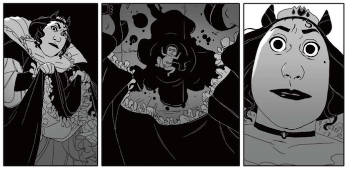 Hubert - On n'a pas envie de faire une suite dans le sens d'un Petit tome 2. On a envie d'explorer ce monde qui est vaste. Là on a vu le sommet du château, quelques kilomètres carrés de ce royaume. Et on sait par les contes, et ce qu'on peut en voir, qu'il y a des choses autour, une ville au pied du château notamment. Et l'idée, ce sera de déplacer le point de vue. de faire d'autres one-shot, qui auront des connexions mais qui ne seront pas une suite.