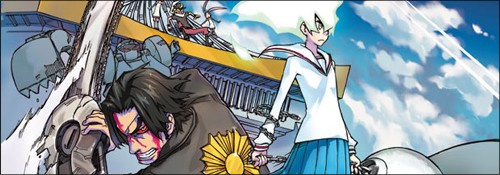 Si les noms de Dai Sato et Masaru Gotsubo vous sont inconnus, c'est à eux que l'on doit l'excellentissime Samuraï Champloo que vous avez bien entendu déjà vu (n'est-ce-pas ?). Pré-publié par le magazine Young Gangan (Ubel Blatt...) dont il était un des porte-étendards, Yuzuko Peppermint est un titre survitaminé, complétement délirant et qui a le mérite de ne pas se prendre au sérieux une seule seconde. Côté histoire, Yuzuko est une étudiante réservée qui se découvre un pouvoir innatendu après une journée de malchance record, marqué par un détournement de bus, un séisme ravageur et la rencontre avec le responsable de la mort de ses parents. Ce pouvoir, le Peppermint, lui permet d'égaler les folles capacités des membres de l'organisation MDD, permettant au dessinateur d'enchaîner dès lors des séquences de combat toutes plus dantesque les unes que les autres. La grande originalité du titre vient justement des abus d'écriture du scénariste, qui ne s'impose aucune limite au risque de tomber dans l'idiotie pure. L'absence de sérieux, y compris lorsque la situation penche vers le dramatique rebutera une partie du lectorat, là où les amateurs de séries comme Kill La Kill trouveront leur bonheur.