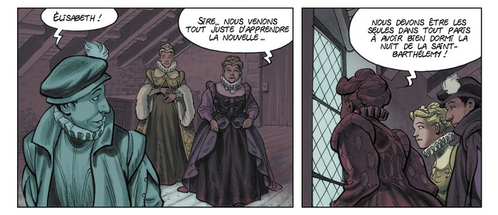 J’y réfléchis sérieusement, cette expérience m’a donné envie de creuser dans cette direction. J’aimerais rester dans cette époque et dans l’entourage des puissants, d’un autre roi... Pourquoi pas le frère de Charly 9 qu’on voit dans la BD sous les traits du Duc d’Anjou et qui lui succèdera sous le nom d’Henri III, un personnage un peu plus sain d’esprit mais bien gratiné tout de même !