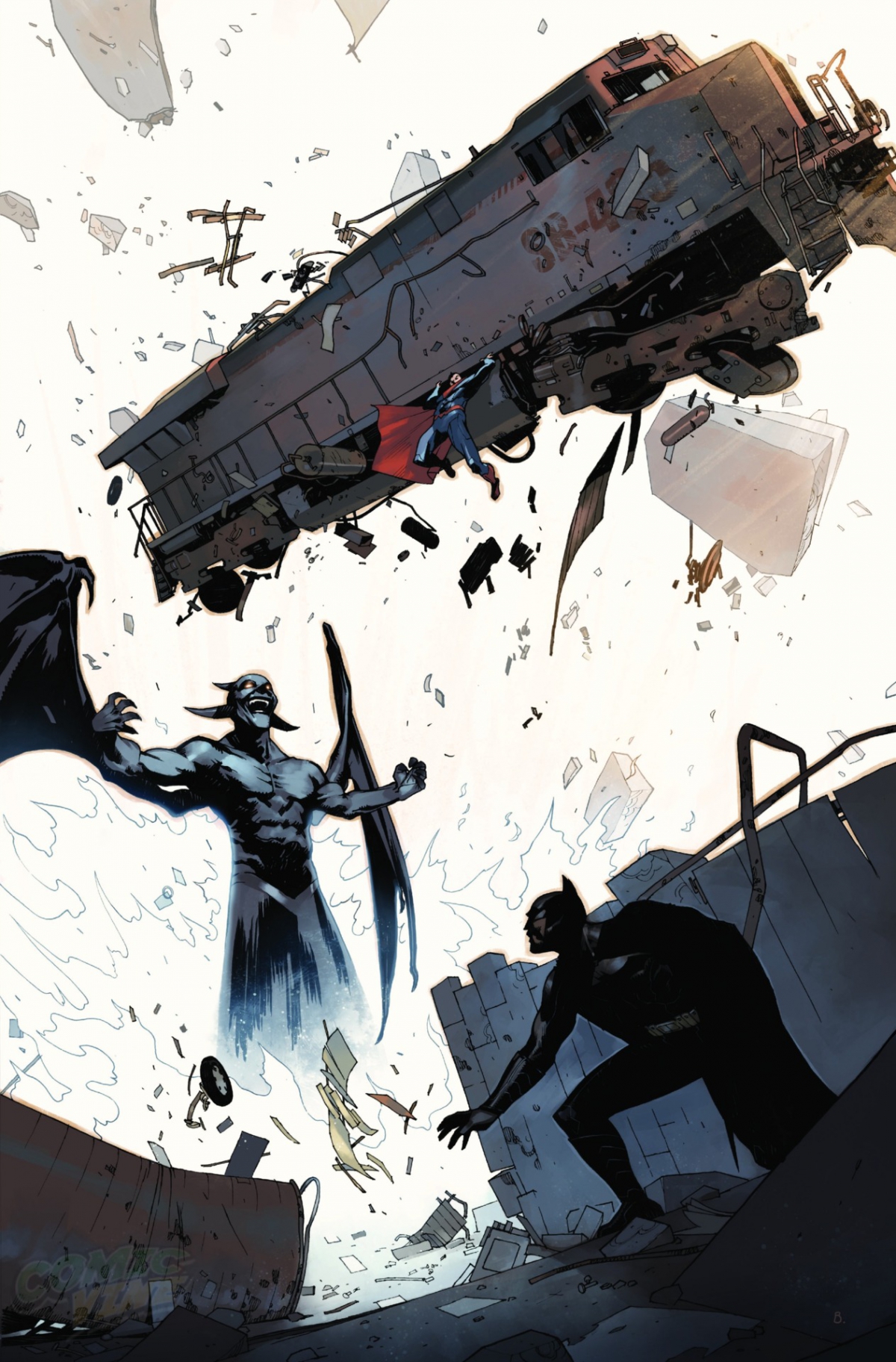 Connu chez nous pour Luminae et Naja entre autres, l'excellent Bengal fait ses valises le temps d'une couverture et nous emmène aux États-Unis, pays de Marvel et DC Comics. C'est pour le compte du second que le dessinateur star d'Ankama a réalisé une couverture (variante - donc plus rare et plus chère), qui met aux prises Superman et Batman face à Lord Satanus dans le cadre de Batman/Superman #15 de Greg Pak et Jae Lee.