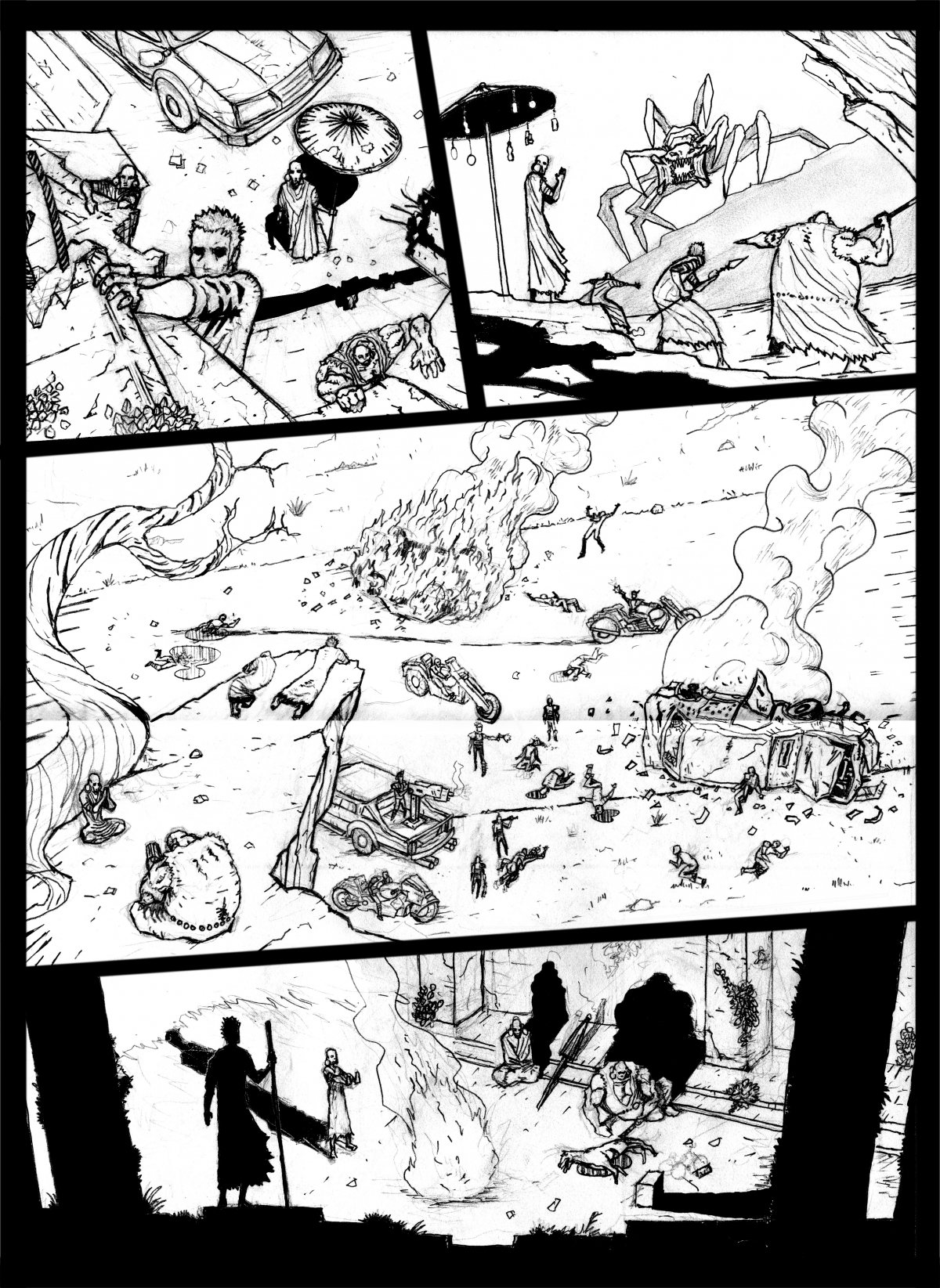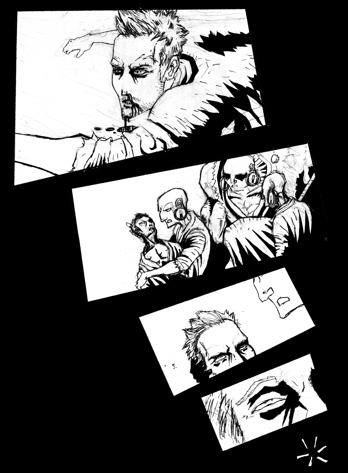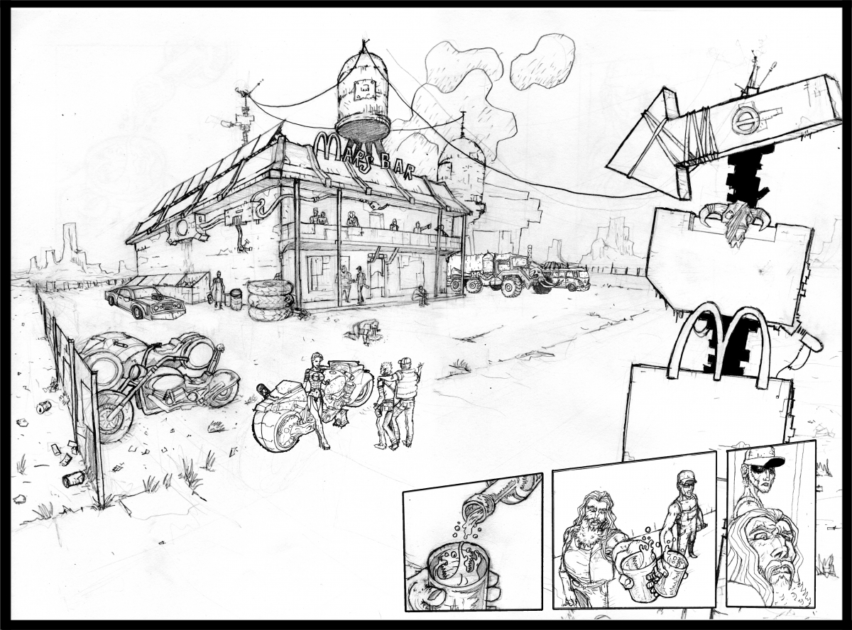 Pour ce premier post, un projet que je traine dans les cartons depuis plus d'un an, en gros un sorte de western post-apocalyptique, Bulletproof, donc, vous y trouverez les premières pages (colo en coprod avec un ami), ainsi que des recherches et autres crayonnés. J'essaierai de nourrir le blog en fonction de mon avancement...