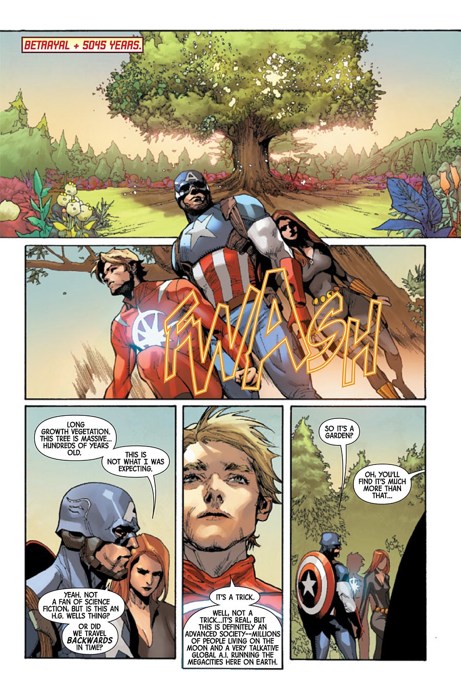 Les deux héros discutent de leur projet de créer une équipe colossale d'Avengers car, les dernières confrontations (AVX, Ultron) leur ont prouvés qu'ils avaient besoin de davantage de force de frappe.