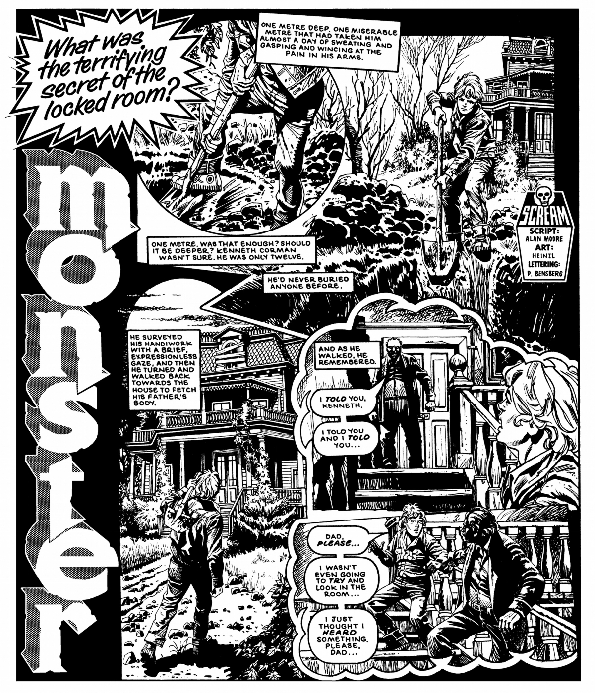 Ainsi, l'éditeur est allé chercher Monster, création d'Alan Moore scénarisée par le presque aussi légendaire Alan Grant, toujours inédite aujourd'hui en france. Créée en 1984, la série qui rassemble des noms qui font aujourd'hui rêver (tels que John Wagner, Jesus Redondo et Heinzl) nous propose un road-trip horrifique et gothique au coeur de la Grande-Bretagne, dans une édition restaurée qui fait notamment honneur au fabuleux premier chapitre signé Alan Moore himself.