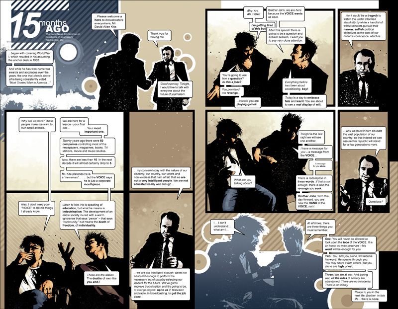 Structurellement, l'histoire à proprement parlé commence par une « voix off » qui scande ce qui semble être des vérités que tout le monde a déjà entendu dans sa vie et dont le but certain est de dénoncer les mauvais agissement du monde de l'information ainsi que les nombreux mensonges que l'on nous débite à longueur de journée. Cette voix, c'est celle du narrateur, ou peut-être celle d'un des protagonistes du livre, ou encore directement celle de l'auteur avec qui elle semble de toute façon se confondre. Par ce moyen, Hickman nous rappelle d'emblée que nous ne sommes pas ici dans un comics de super-héros ou dans une œuvre de science-fiction (son genre de prédilection) mais bien dans un récit prenant place dans notre monde à nous, à notre époque à nous, avec les dérives que nous connaissons tous.