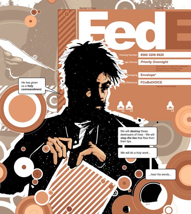 Hickman n'use pas réellement de ce discours infantilisant, préférant rendre son récit plus riche et tentant ainsi d'éviter de tendre des arguments à d'éventuels détracteurs du comics mainstream. Mais il modifie habilement ce principe du discours « infantilisant » par un discours « condescendant », ce qui revient à peu près au même puisque le résultat est d'ôter toute notion critique au correspondant. Ainsi, nous découvrons à plusieurs reprises au sein du livre que La Voix use d'une certaine façon de s'exprimer lorsqu'elle s'adresse à John, déjà très affaiblit psychologiquement. Alliant discours stéréotypé de psychologue amateur et position avenante purement cosmétique, cet homme pour qui l'art de la manipulation n'a plus de secret parvient à rattacher nombre d'individus à sa cause à l'instar des plus grands gourous qu'a porté notre monde.