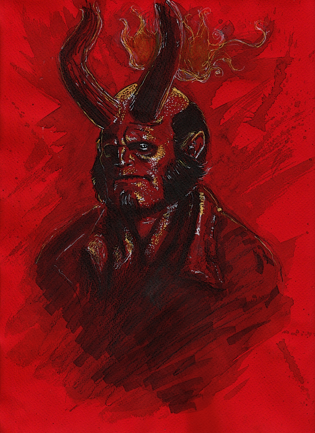 Tout d'abord la première des illustrations porte sur Hellboy dont je suis un grand Fan autant dans les comics de Mike Mignola que dans les films de Guillermo Del Toro. Le dessin est un speed painting réalisé entre 30 et 40 min.