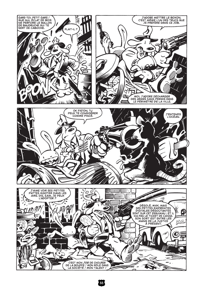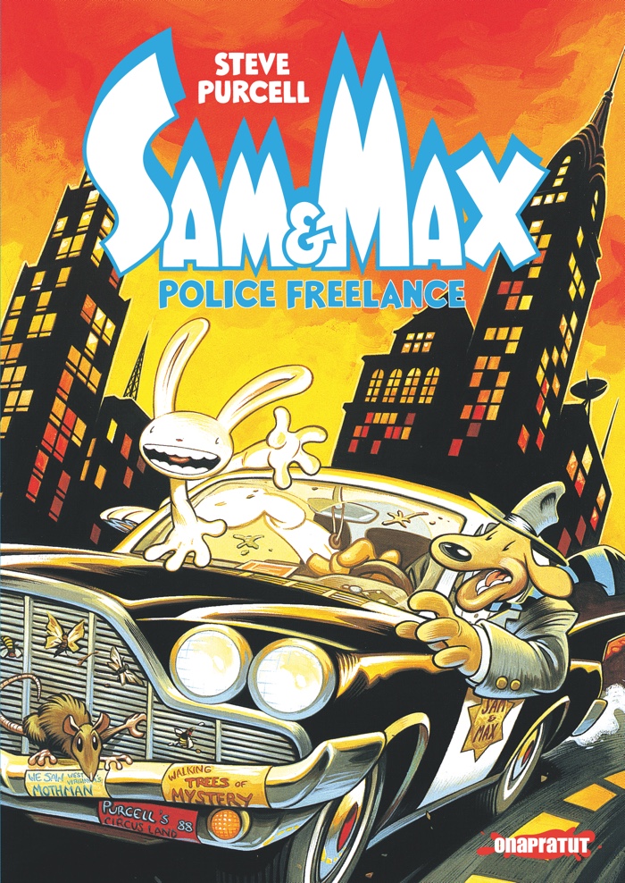 Qui se souvient de Sam & Max, improbable duo d’enquêteurs, l’un clébard en imper, l’autre lapin au sourire carnassier ? Avant d’avoir fait les beaux jours du jeu vidéo d’aventures au cours des années 90, au côté de Monkey Island, les deux tarés créés par Steve Purcell ont sévi en BD dès 1987. Courant avril, la petite maison d'édition Onapratut publie l’intégralité de leurs aventures en français, soit 200 pages – dont une cinquantaine en couleur – pour 20 euros.