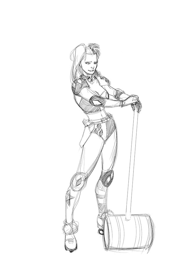 Tonight, just for fun, I inked a sketch of Harley Quinn he did recently...