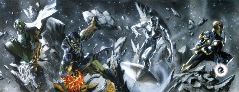Dans ce premier tome, tout se met en place pour combattre cette nouvelle menace, on a là un récit très dynamique qui laisse la place à l'action et la destruction dans un premier temps pour présenter nos différents protagonistes, d'ailleurs très nombreux ! Nova, Drax, Quasar, Ronan, le surfer, Galactus, Annihilus, Thanos, Gamora et j'en oublie sûrement !