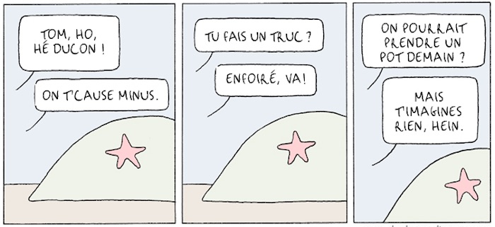 Mais au milieu de la débauche d'insultes, de violence, et de moments de solitude, il y a aussi une vraie poésie dans ce recueil. Les strips sont tous plus drôles les uns que les autres, ce dont vous pourrez d'ailleurs juger par vous-même sur le tumblr Traits approximatifs, version traduite en français que l'on retrouve dans la bande dessinée. On peut d'ailleurs saluer le travail de traduction qui parvient à conserver tout l'humour des dialogues, un exercice loin d'être évident.