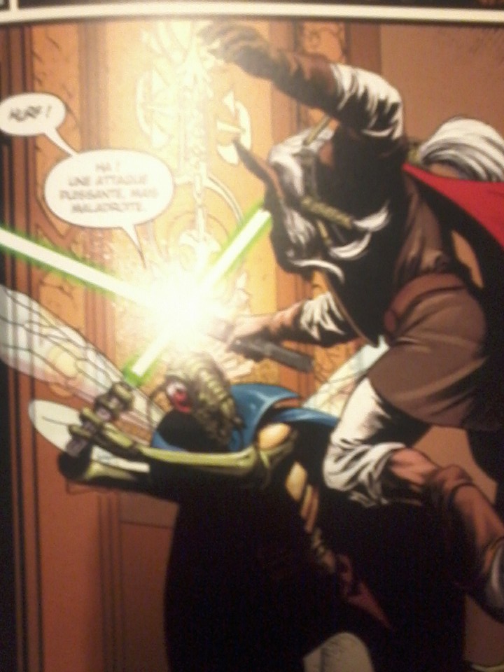 Je devais lire ce numéro depuis quelques temps et puis hier soir 3 janvier 2013, le couperet tombe : Dark Horse Comics perd la licence Star Wars pour les comics au profit de Marvel. Bref, Mickey remet tous ses œufs dans le même panier. Triste nouvelle pour l’équipe de Dark Horse et ses talentueux scénaristes et artistes qui ont écrit les pages de l’univers étendu de la saga de George Lucas. Bref ce dernier volet de l’arc A Sparkle Remains fait image à l’actualité éditoriale du comic book. Un fier maître Jedi rescapé de l’Ordre 66 tient son ultime baroude d’honneur face au seigneur Sith Darth Vader pour permettre à un ami Jedi de fuir les forces impériales avec ses amis. Encore un personnage connu et apprécié des fans de l’UE Star Wars qui disparaît. C’est triste, mais l’espoir perdure, j’espère qu’il en sera ainsi pour la licence au sein de Marvel. Encore un excellent arc de Stradley et Wheatley. J’espère que Marvel saura s’entourer d’auteurs et de dessinateurs ayant la passion et la connaissance pour continuer ces histoires ou en créer de nouvelles aussi bonnes. ;-( SNIF SNIF ! 5/5